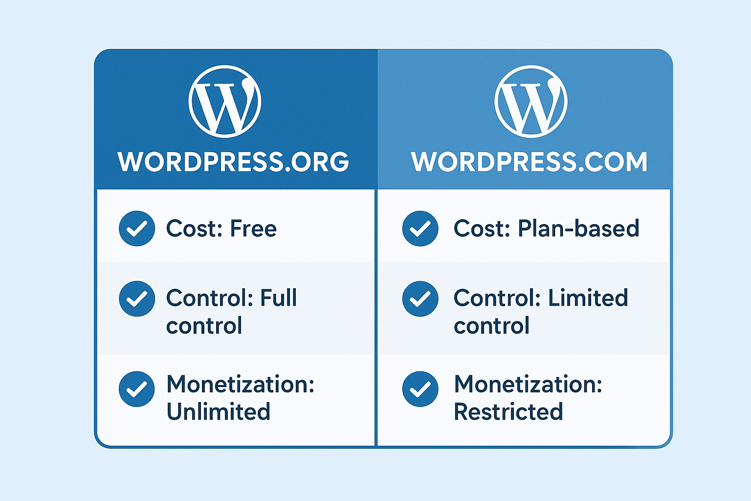 👉 Choose WordPress.com if you just want a simple, no-maintenance setup.